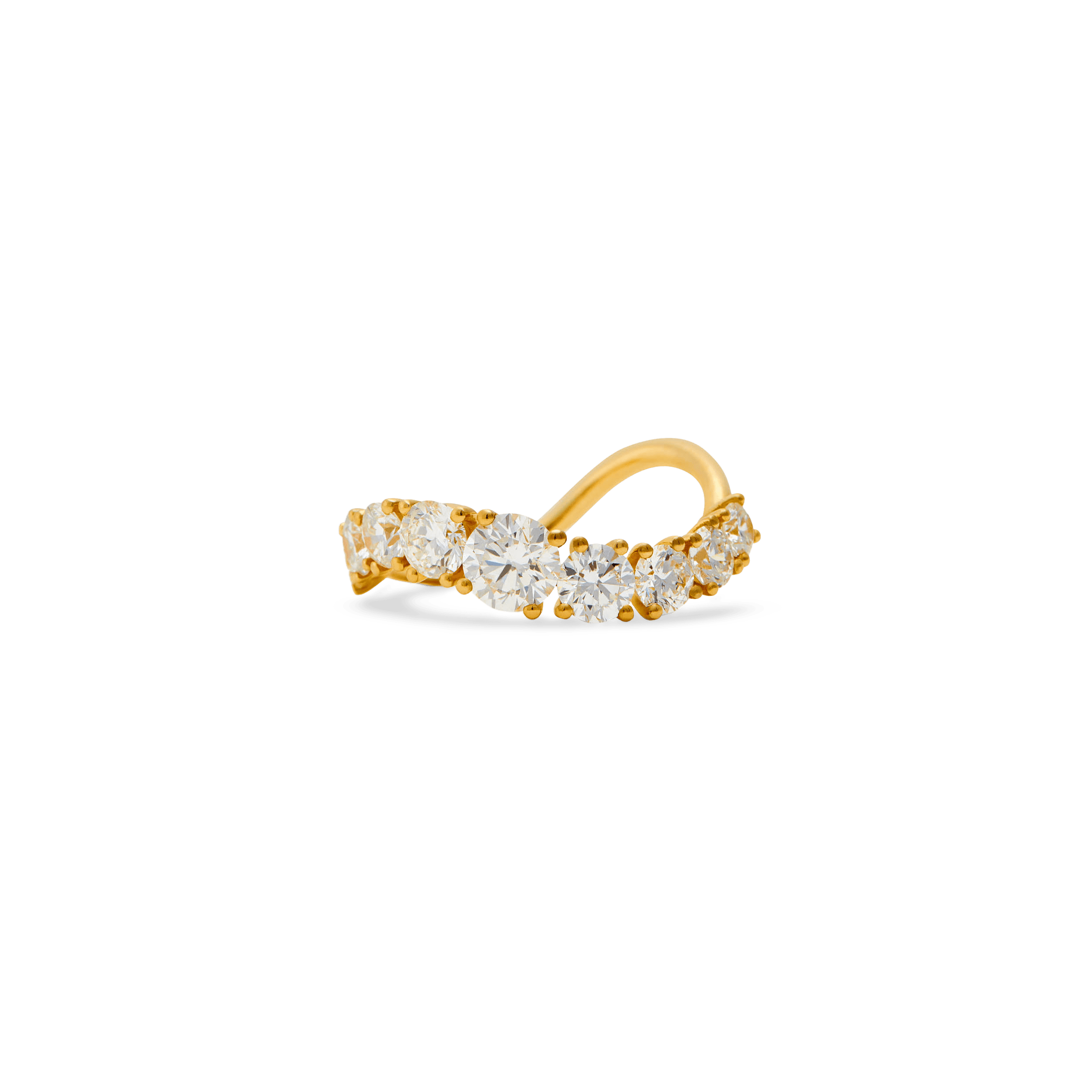 The Michele ring is unlike any other that I have seen on the market. The wave design is a unique take on the classic diamond bad without being too trendy. The craftsmanship and design are flawless, and the diamonds are some of the best quality I have ever seen! I highly recommend this ring! Be sure to size up a half size when ordering.
